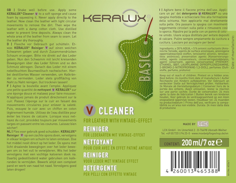Je gebruikt de Keralux® set Vi basis 2-4 keer per jaar om het leder te onderhouden. Probeer onderhoudsproducten altijd eerst even uit op een onopvallende plek, voordat je het hele meubel behandelt en lees de gebruiksaanwijzing goed door. De volgorde is altijd hetzelfde: